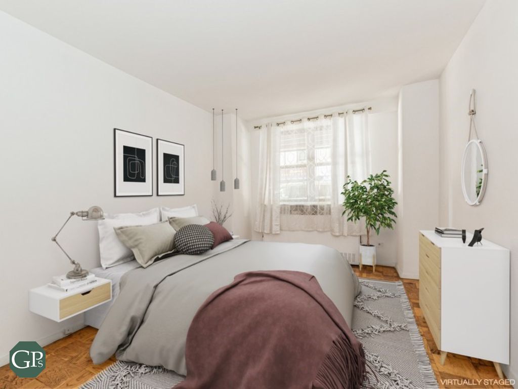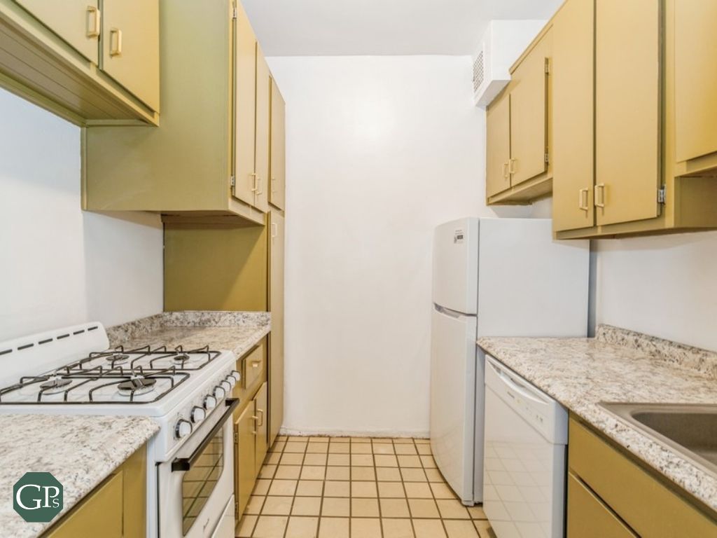 This apartment has a lofty feel with it’s 9.12 foot ceilings and plenty of storage space, unusual in a one bedroom apartment. It has four closets, two in the bedroom one a walk-in, awaiting your desision to turn into a California closet or maybe the Container Store is more your style. The kitchen has all new appliances stove, refrigerator and dishwasher. The bathroom has a new sink, vanity and toilet. This apartment is the perfect blank slate, but also, move in ready.